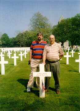 (right) My father Bill and I stand by the grave of his brother Carley |